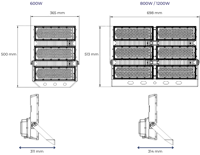 | FE-AVAS-1200-060 | 1200W | 174.000lm | 145 | >70 | 5000k | 60º | Vidro Transparente | 120-277Vca |