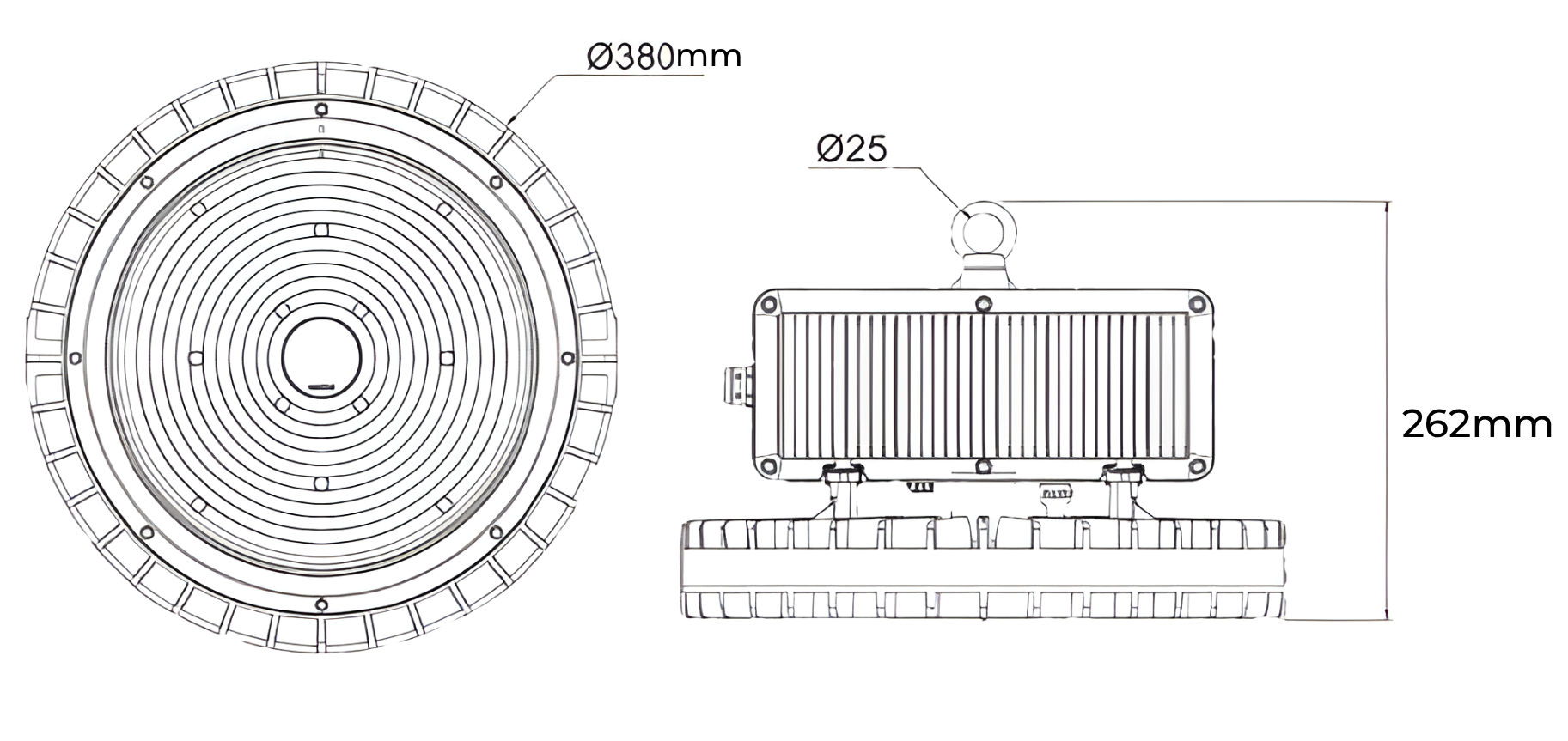 100W, 150W e 200W: Ø380 × 262 mm